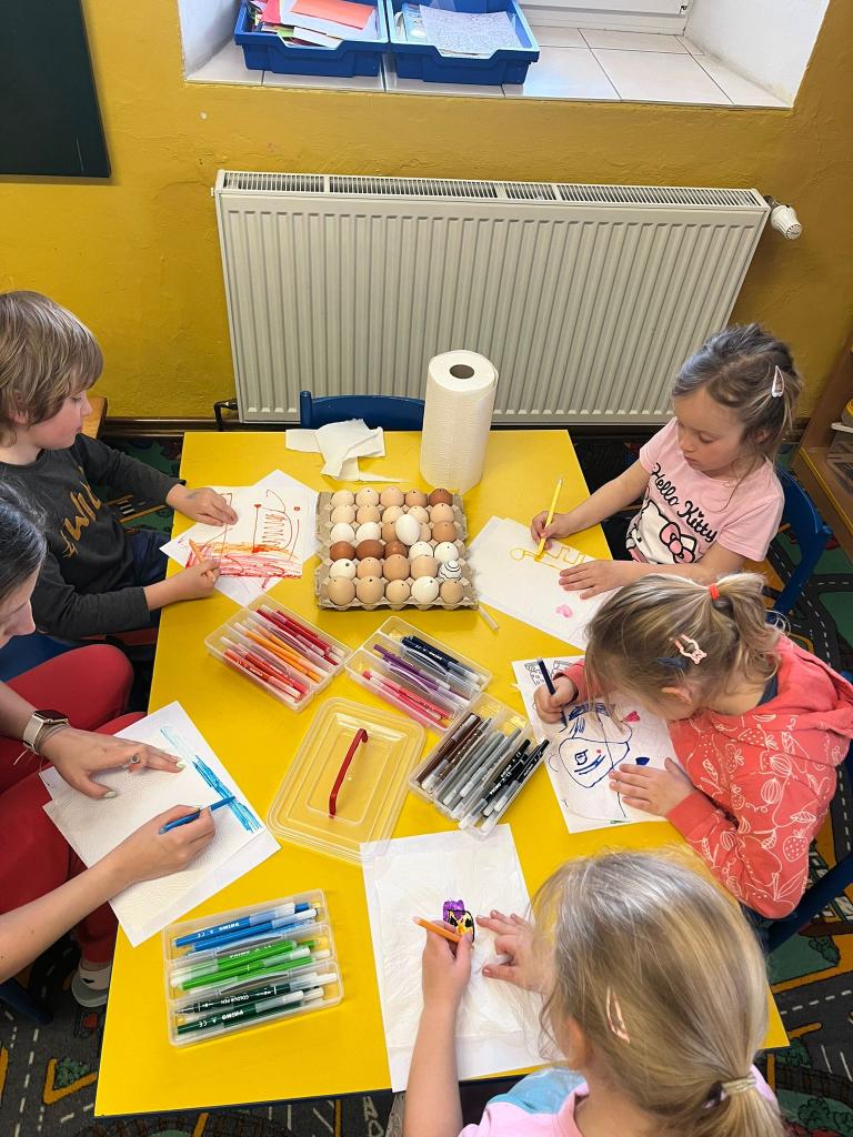 Pomocí netradiční techniky jsme barvili vajíčka.